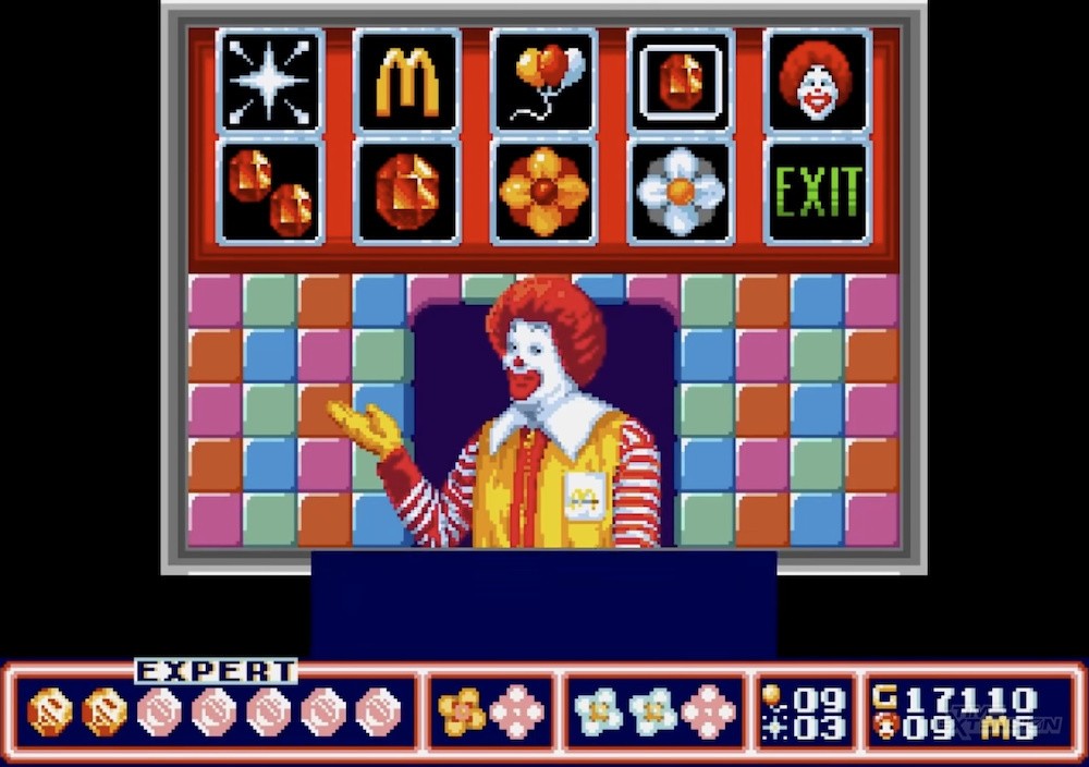 Furthermore, the in-game shop – which, in the original pitch, would have resembled a McDonald's restaurant complete with food items and a waitress – had to be changed. In the final version, Ronald acts as the shopkeeper – so he is, in essence, buying items from himself. The food items are changed to jewels and rings.