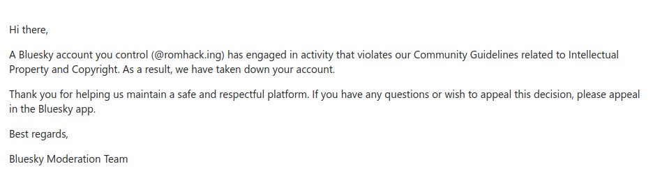 Remember how we mentioned the copyright-related oddness which surrounded Cookie's Bustle? Well, Romhack.ing, which uploaded the English patch recently, has been hit with a suspension on BlueSky for posting about it.