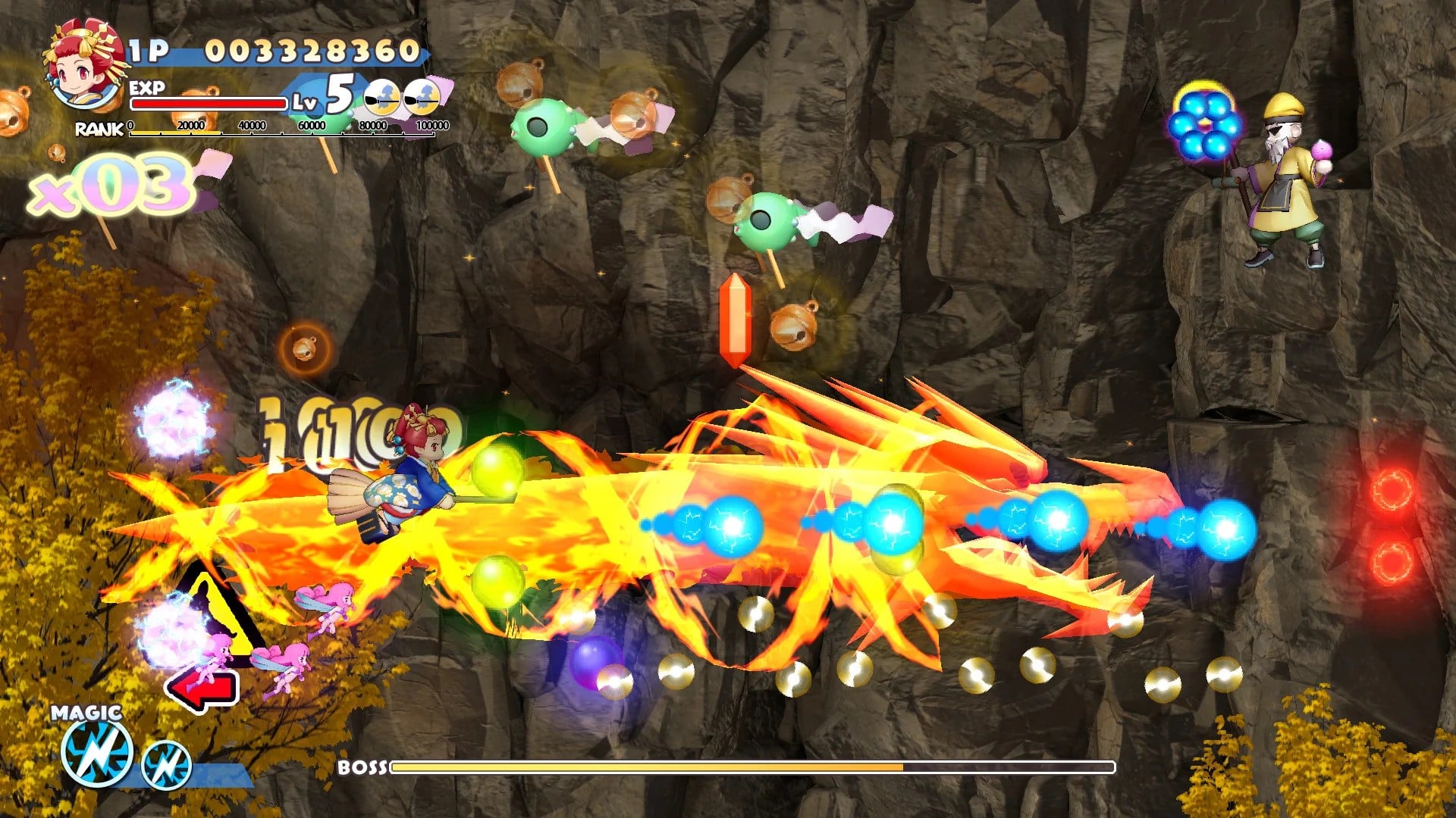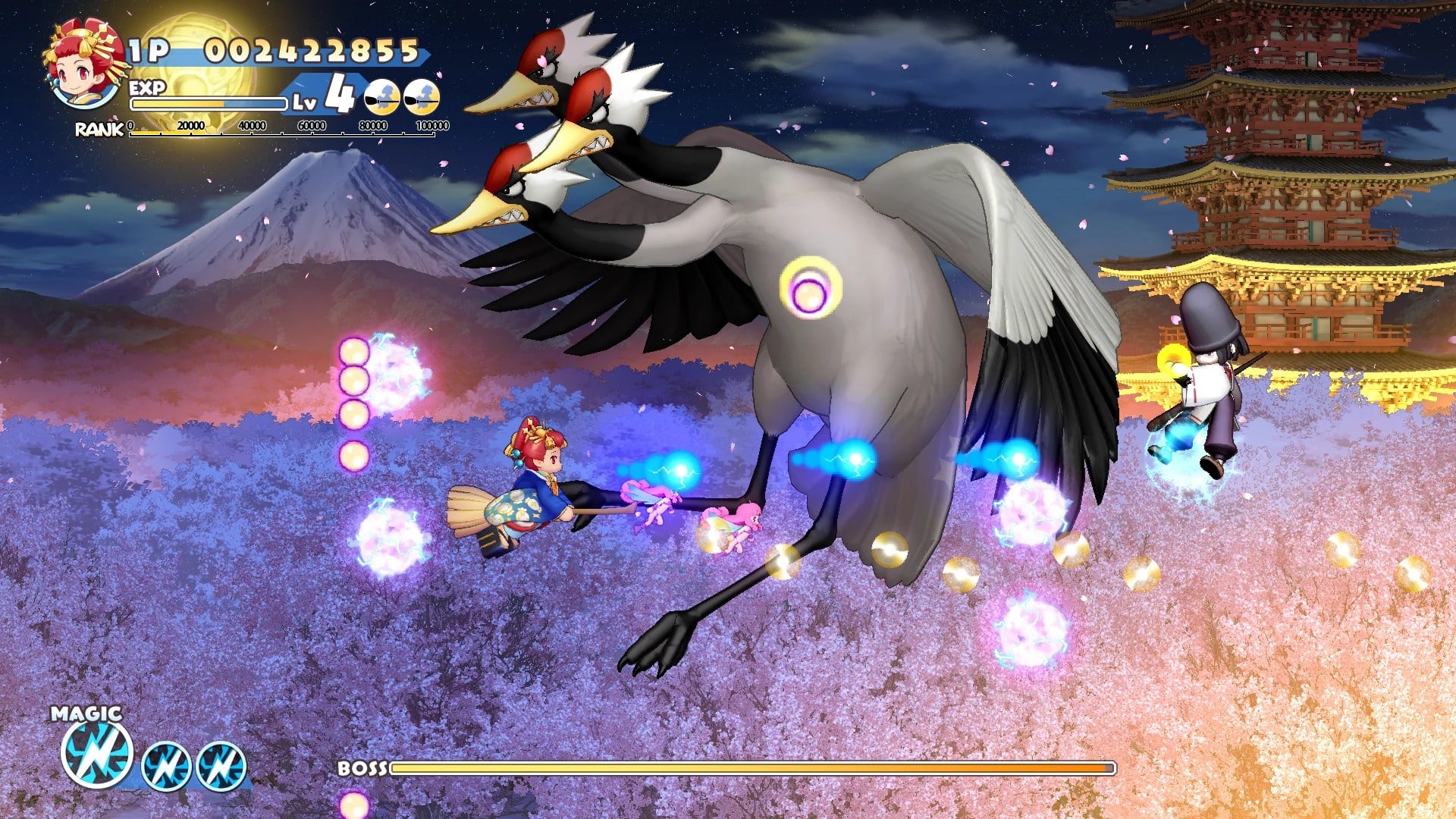 Cotton: Rock With You sees the greedy young witch, Nata de Cotton, setting off on another quest for Willow candy, with the journey this time taking her to Japan. Players can also select from 10 playable characters, including Izuna from Izuna: Legend of the Unemployed Ninja and Psyva Ria, "a character based on the player aircraft from Psyvariar 3," with the game containing 16 total stages, including six selectable main stages, as well as bonus and final stages. Most of these levels seem to feature 2D scrolling levels, similar to the first entry in the series, with some occasional 3D sections (in the style of Panorama Cotton) also being included, if the screenshots are anything to go by.