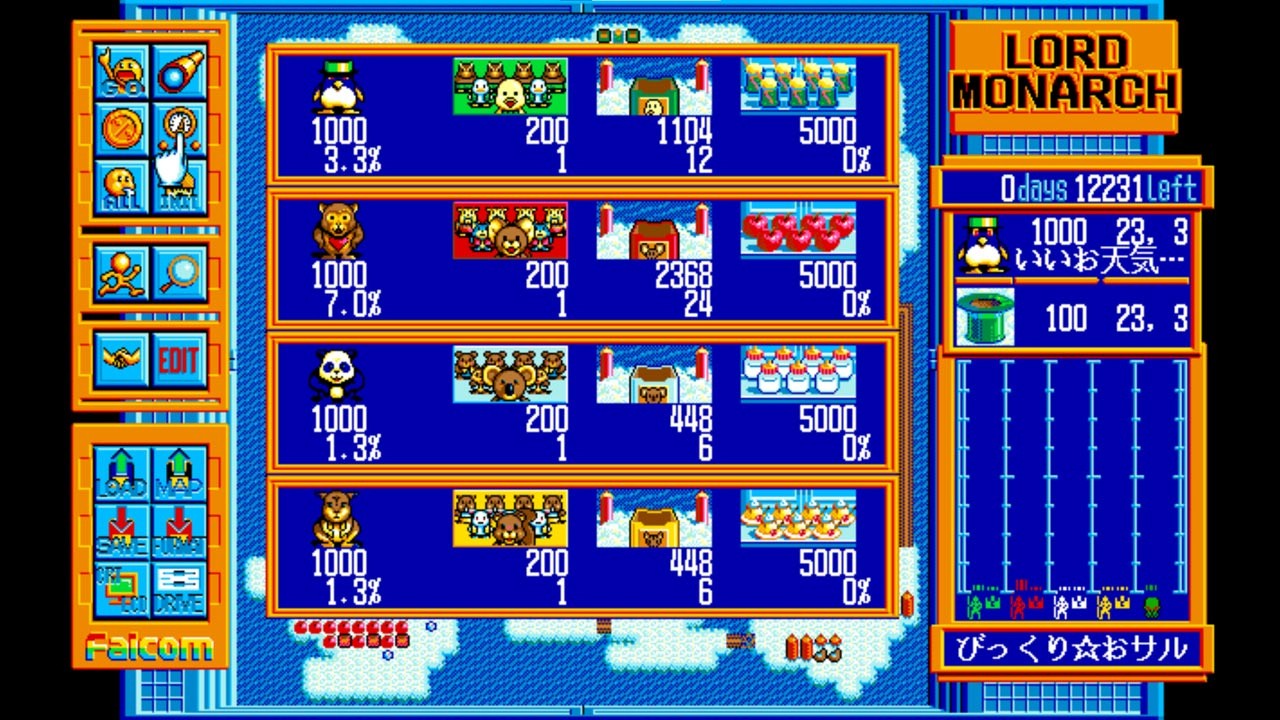 As for Advanced Lord Monach, it is an enhanced version of the seventh entry in the Dragon Slayer series, Lord Monarch, which was released in 1991. It swaps the series's trademark action RPG for an RTS-style presentation, with the game casting you in the role of a king, on a mission to defeat a bunch of rival armies.