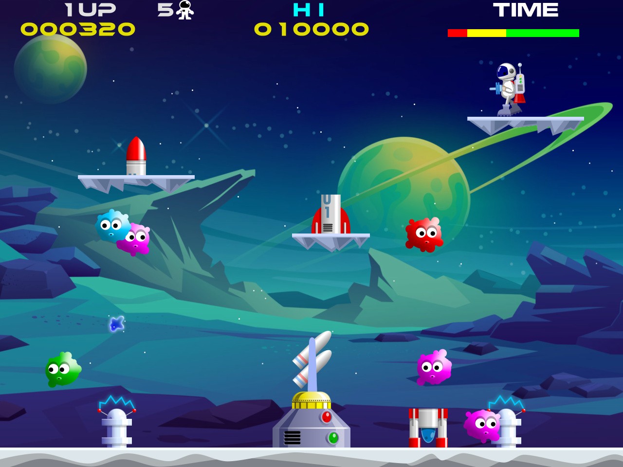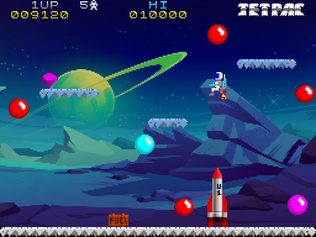It's also possible to have platforms randomly re-arrange themselves with each new rocket build, and you can also decide if fuel pods are destructible, adding another layer of difficulty. Another upgrade is the missile launcher from the sequel, Lunar Jetman.