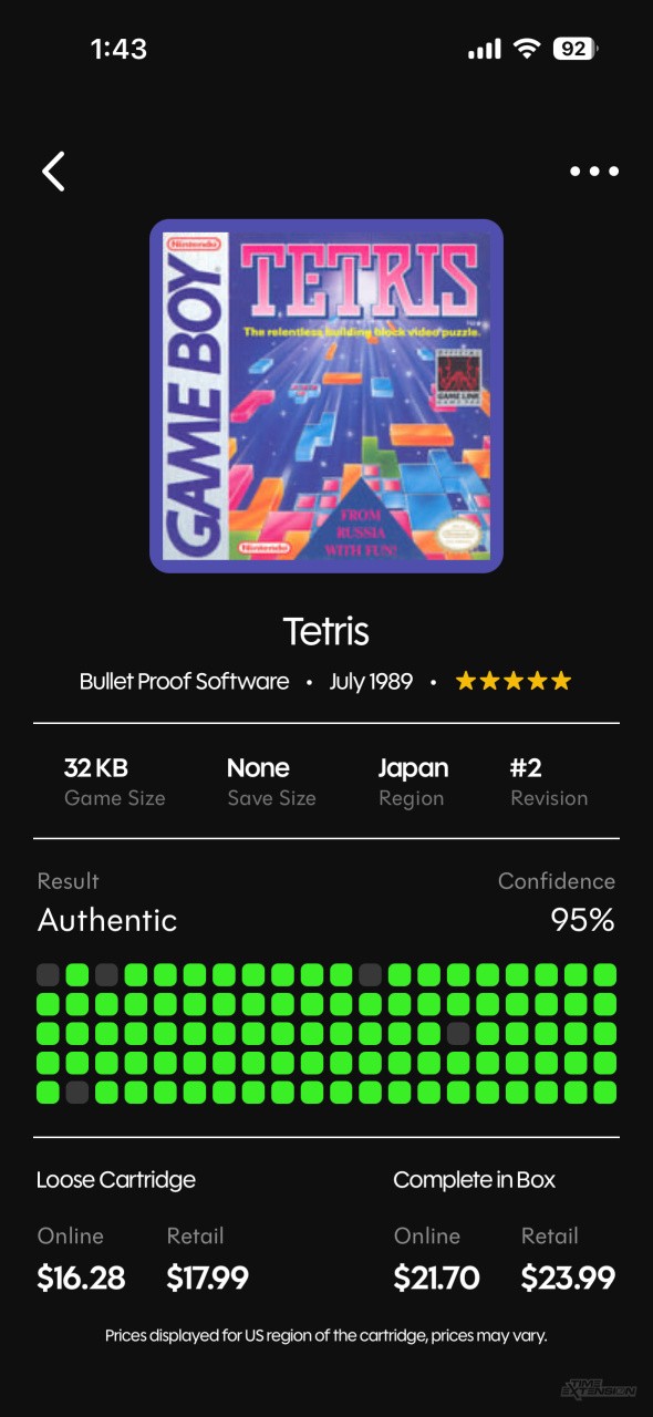 Simply grab your GB Operator, make sure it's running the latest firmware and download the Retrace application for your phone. Plug the GB Operator into your phone with a USB-C cable, insert a cartridge, and it will not only tell you if it's authentic, but will also give you the typical price for that game.